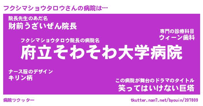 | 欧米人風あだ名 | 『マイケルフクシマショウタロウ』 |