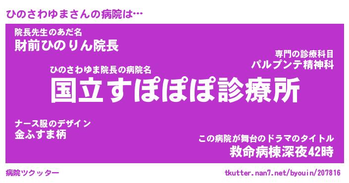 | 男性向けラノベタイトル風あだ名 | 『ひのさわゆまの憂鬱』 |