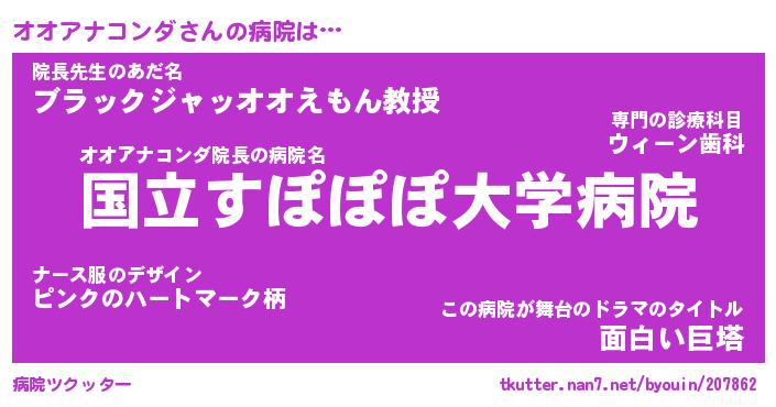 | 男性向けラノベタイトル風あだ名 | 『オオアナコンダの憂鬱』 |
