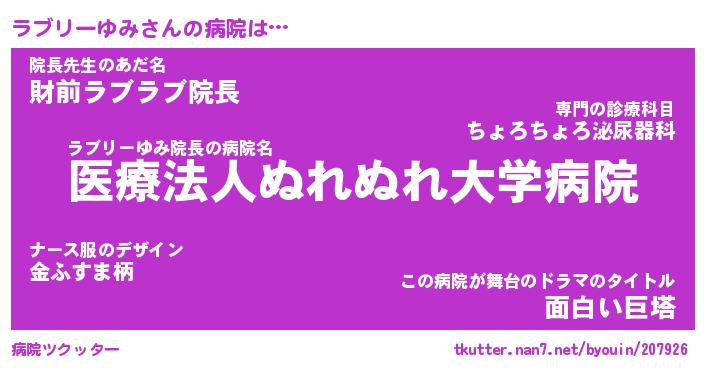 | ヒーロー風カッコイイあだ名 | 『スーパーラブリーユミ』『天弓騎士ラブ』 |