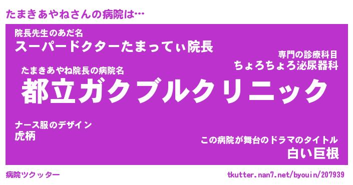 | ツイッター | たまきあやねさんのツイッターID『dendenmushi_idle』 |