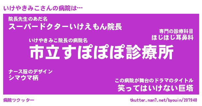 | 伝説のあだ名 | 『伝説のスナイパーいけやきみこ』 |