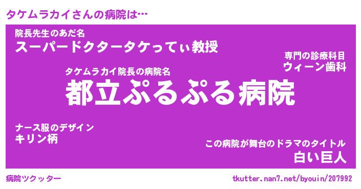| ポケモン風あだ名 | 『タケチュウ』『タケムダネ』 |