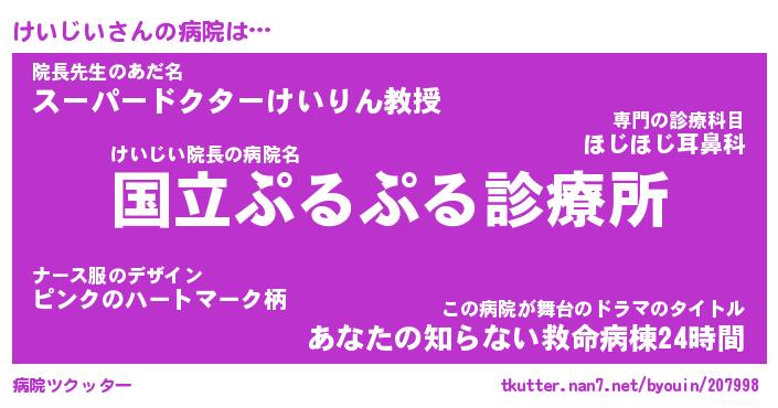 | 意味不明あだ名 | 『ペロリンけいじい』『永久保存けいじい』 |