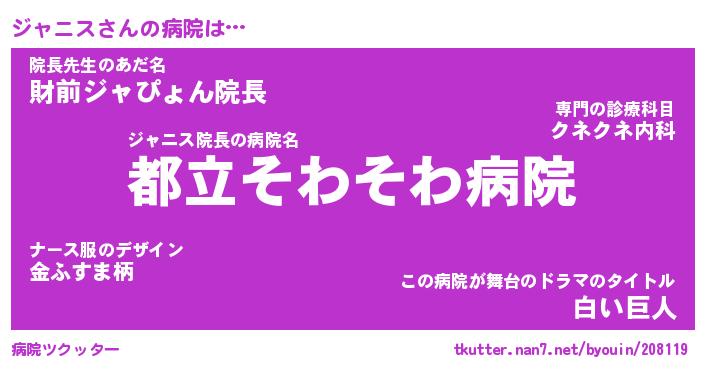 | 意味不明あだ名 | 『ペロリンジャニス』『永久保存ジャニス』 |