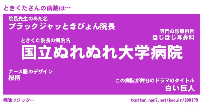 | ヘコむあだ名 | 『ときもー』『豆乳』『ときっ子』 |
