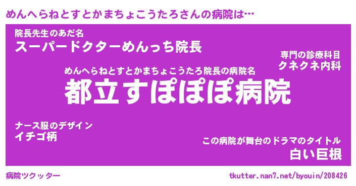 | 恥ずかしいあだ名 | 『プリティーめんへらねとすとかまちょこうたろ』 |