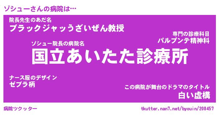 | 男性向けラノベタイトル風あだ名 | 『ゾシューの憂鬱』 |