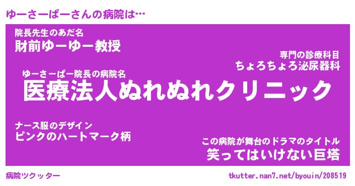 | ポケモン風あだ名 | 『ユーチュウ』『ユーサダネ』 |