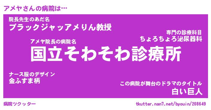 | ヒーロー風カッコイイあだ名 | 『スーパーアメヤ』『ウルトラアメヤマン』 |