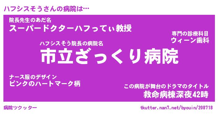 | 男性向けラノベタイトル風あだ名 | 『ハフシスそうの憂鬱』 |