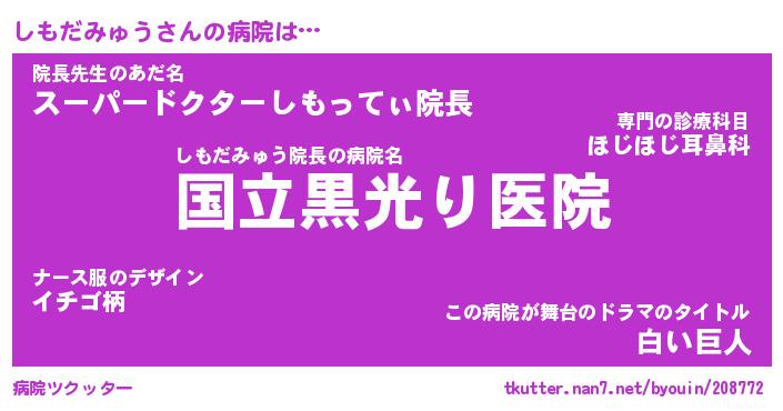 | 男性向けラノベタイトル風あだ名 | 『しもだみゅうの憂鬱』 |