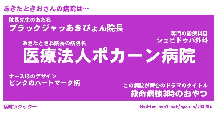 | 肩書あだ名 | 『あきたときお店長』『あきたときお教頭』 |