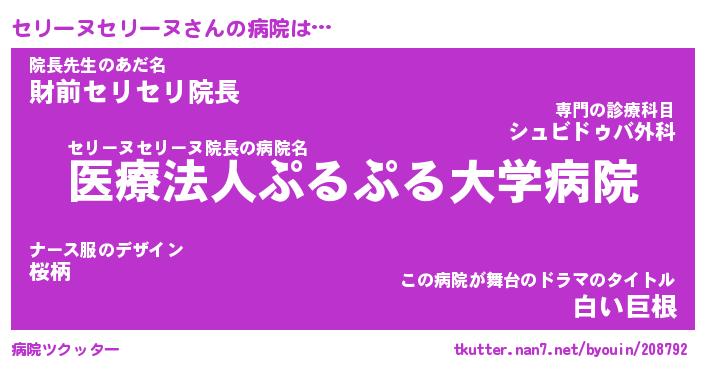 | ヘコむあだ名 | 『セリふぇ~』『酢こんぶ』 |