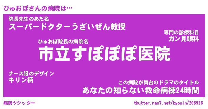 | 男性向けラノベタイトル風あだ名 | 『ひゅおぽの憂鬱』 |