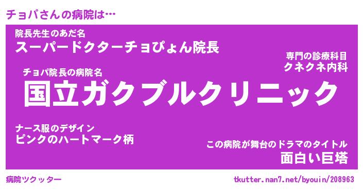 | ヒーロー風カッコイイあだ名 | 『スーパーチョパ』『ウルトラチョパマン』 |