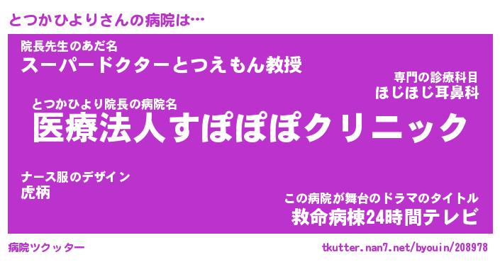 | ヒーロー風カッコイイあだ名 | 『スーパートツカヒヨリ』『魔戒騎士トツ』 |