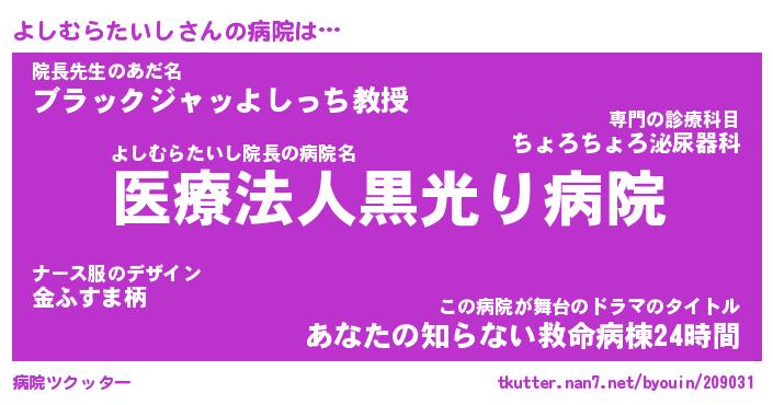| 胡散臭い通販商品みたいなあだ名 | 『億万長者になれるブレスレット…その名も「よしむらたいし」』 |