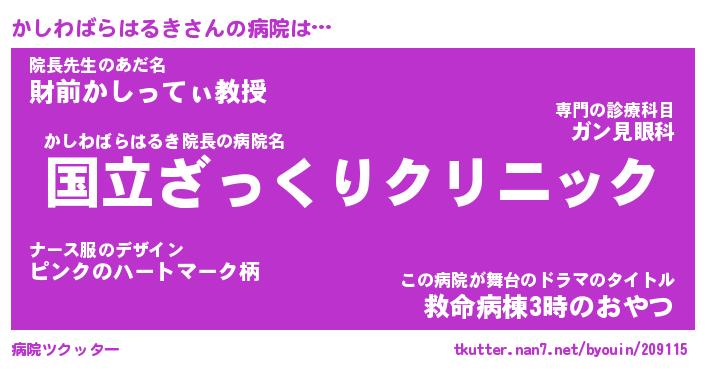 | 胡散臭い通販商品みたいなあだ名 | 『必ず成功する霊験あらたかなお札…その名も「かしわばらはるき」』 |