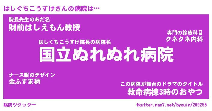 | ヘコむあだ名 | 『はしもー』『牛乳』『はし太郎』 |