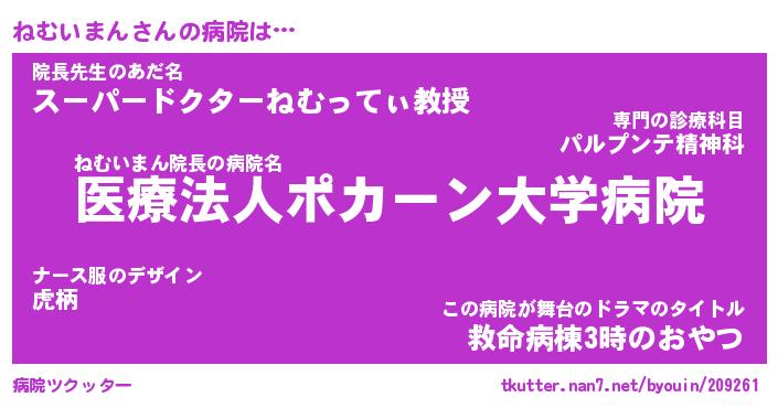 | ヘコむあだ名 | 『ねむもー』『牛乳』『ねむぷりん』 |