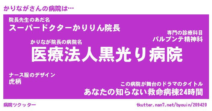| 意味不明あだ名 | 『ペロリンかりなが』『永久保存かりなが』 |