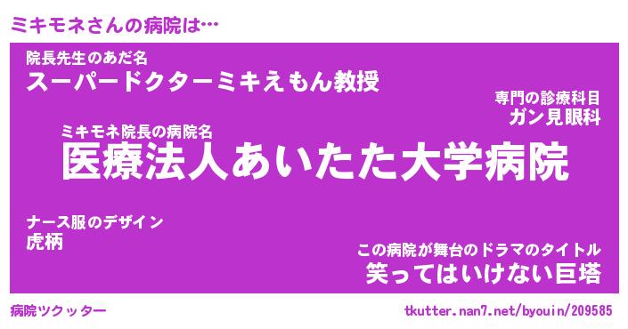 | 意味不明あだ名 | 『ペロリンミキモネ』『永久保存ミキモネ』 |