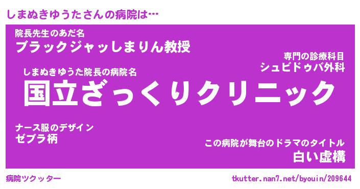 | 肩書あだ名 | 『しまぬきゆうた御曹司』 |