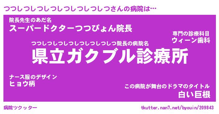 | ツイッター | つつしつしつしつしつしつしつしつさんのツイッターID『masyumaro_idle』 |