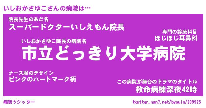 | 伝説のあだ名 | 『不死鳥のスナイパーいしおかさゆこ』 |