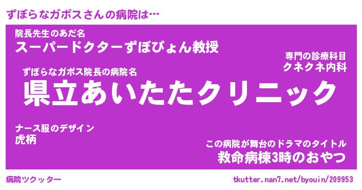 | ヘコむあだ名 | 『ずぼっふぃ~』『つくし』 |
