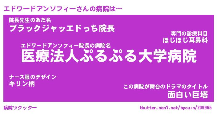 | ツイッター | エドワードアンソフィーさんのツイッターID『dendenmushi_idle』 |
