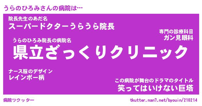 | ヒーロー風カッコイイあだ名 | 『スーパーウラノヒロミ』『暗黒騎士ウラ』 |