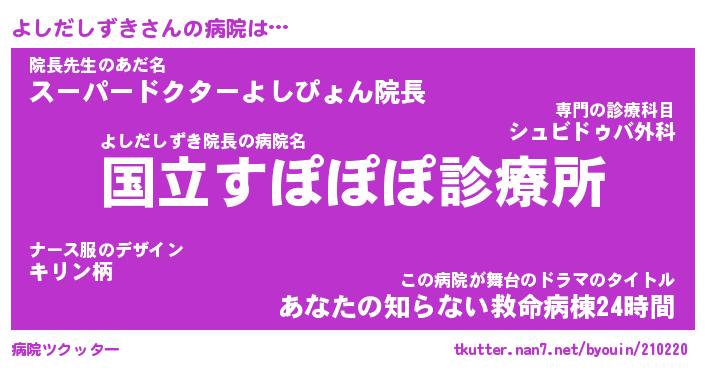 | ポケモン風あだ名 | 『ヨシチュウ』『ヨシダダネ』 |