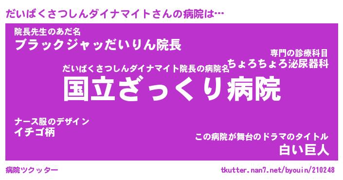 | ことわざ | 2階から目薬『2階からだいばくさつしんダイナマイト』 |