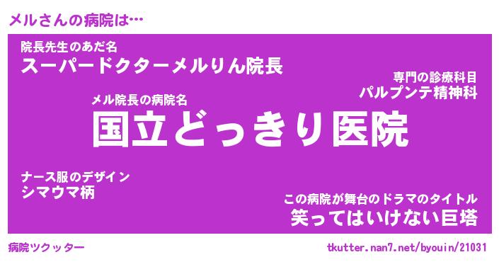 | 男性向けラノベタイトル風あだ名 | 『メルの憂鬱』 |
