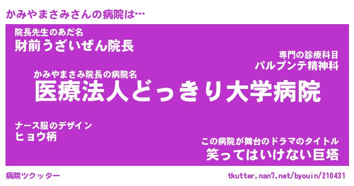 | 胡散臭い通販商品みたいなあだ名 | 『億万長者になれる霊験あらたかなお札…その名も「かみやまさみ」』 |