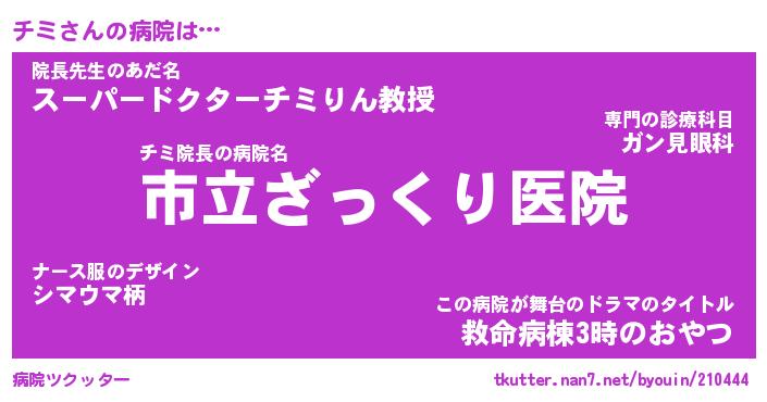 | 男性向けラノベタイトル風あだ名 | 『チミの憂鬱』 |