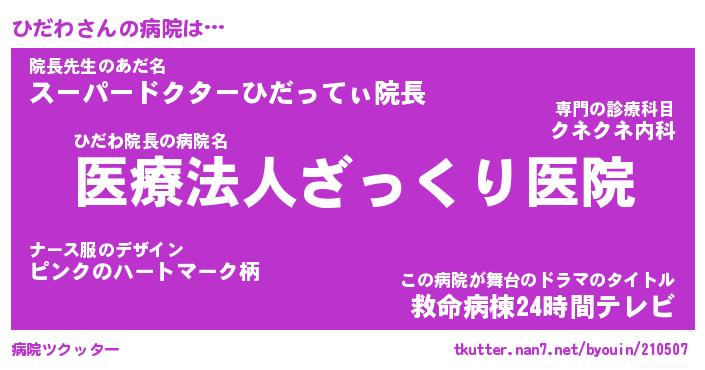 | ヒーロー風カッコイイあだ名 | 『スーパーヒダワ』『ウルトラひだわマン』 |