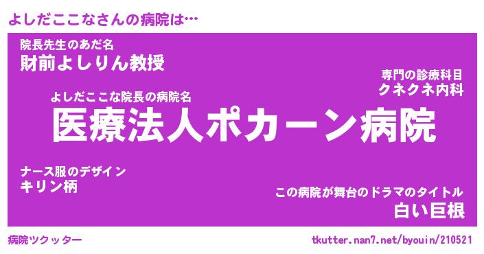 | 胡散臭い通販商品みたいなあだ名 | 『億万長者になれる水晶球…その名も「よしだここな」』 |