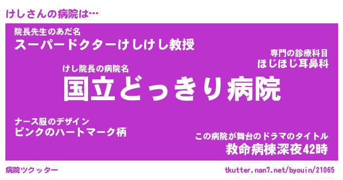 | 男性向けラノベタイトル風あだ名 | 『けしの憂鬱』『ノーゲーム・ノーケシ』 |