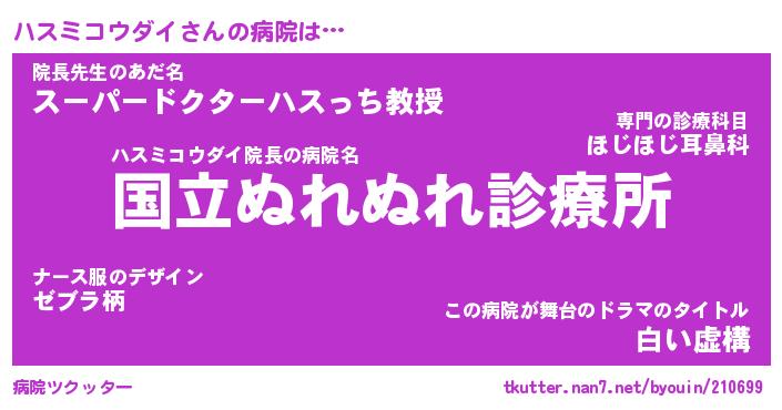 | 男性向けラノベタイトル風あだ名 | 『ハスミコウダイの憂鬱』 |