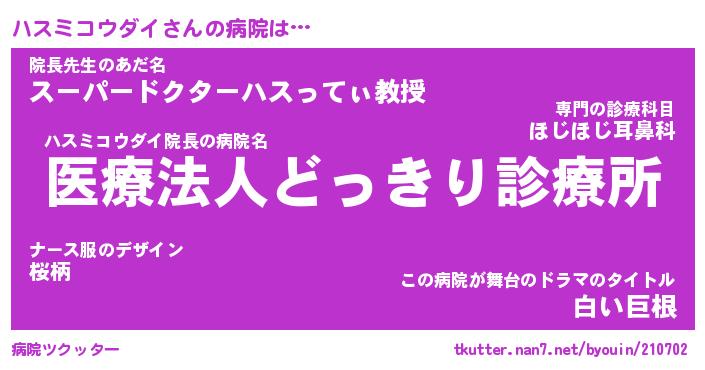 | ピコ太郎風あだ名 | 『ハコ八郎』『ピハ次郎』『ハス一郎』 |