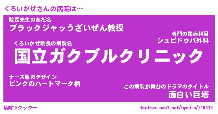 | 男性向けラノベタイトル風あだ名 | 『くろいかぜの憂鬱』 |
