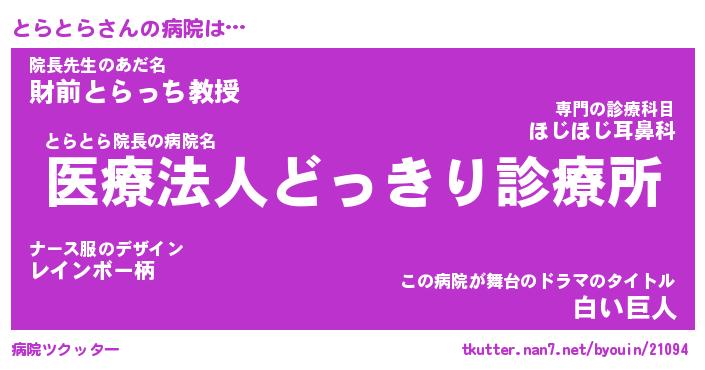 | 自動車の名前っぽいあだ名 | 『トラティマ』『トスラー』 |