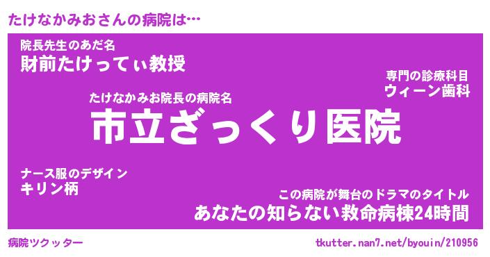 | ヘコむあだ名 | 『たけもー』『酢こんぶ』『たけっぺ』 |