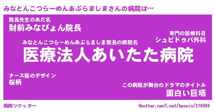 | 欧米人風あだ名 | 『マイケルみなとんこつらーめんあぶらましま』 |