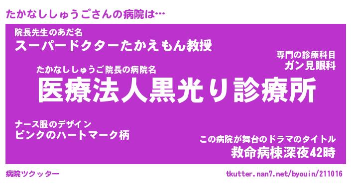 | 肩書あだ名 | 『たかなししゅうご社長』 |