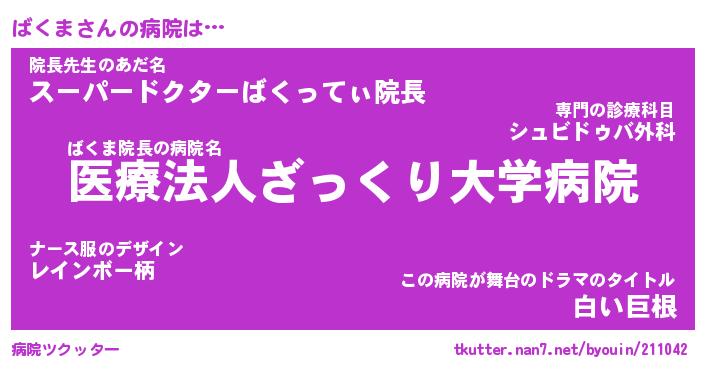 | ヒーロー風カッコイイあだ名 | 『スーパーバクマ』『ウルトラばくまマン』 |