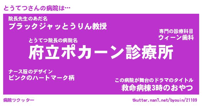 | 2回繰り返すあだ名 | 『とうとう』『ととうう』『ぬらぬら』 |